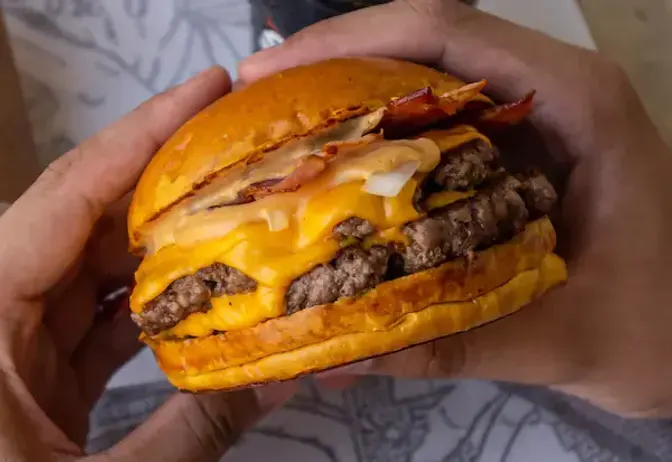 Pão brioche fofinho, burger de 100g, cheddar, cebola picada, bacon fatiado e o molho SAUCE!