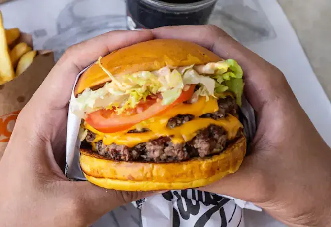 Pão brioche fofinho, burger de 100g, cheddar, alface americana, tomate, cebola picada e o molho SAUCE!